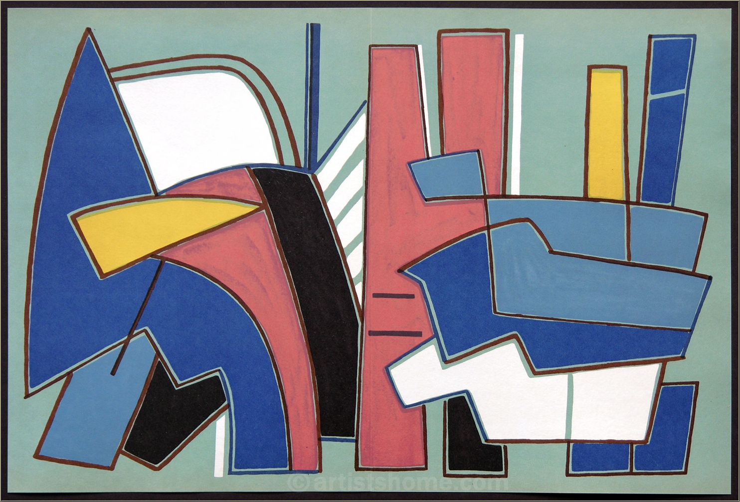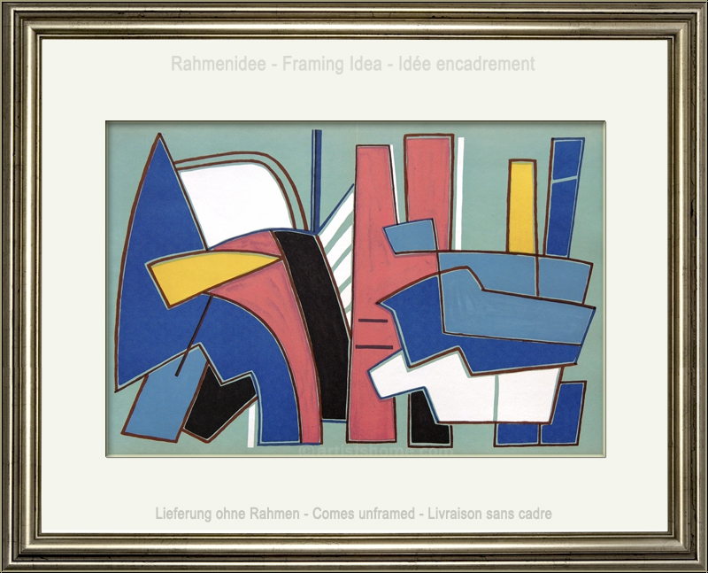 Details:Geometrische Komposition, 1967 Mit nur knapp 100 im Werkverzeichnis katalogisierten Werken in immerhin rund 40 Schaffensjahren ist der Umfang von Magnellis Druckgrafik als spärlich zu bezeichnen. Diese unsignierte, bildschöne Farblithographie mit ihrer eindrucksvollen Bildkonstruktion trägt - wie nahezu alle Grafiken des Künstlers - keinen Titel und erwartet somit die unvoreingenommene Deutung des Betrachters.