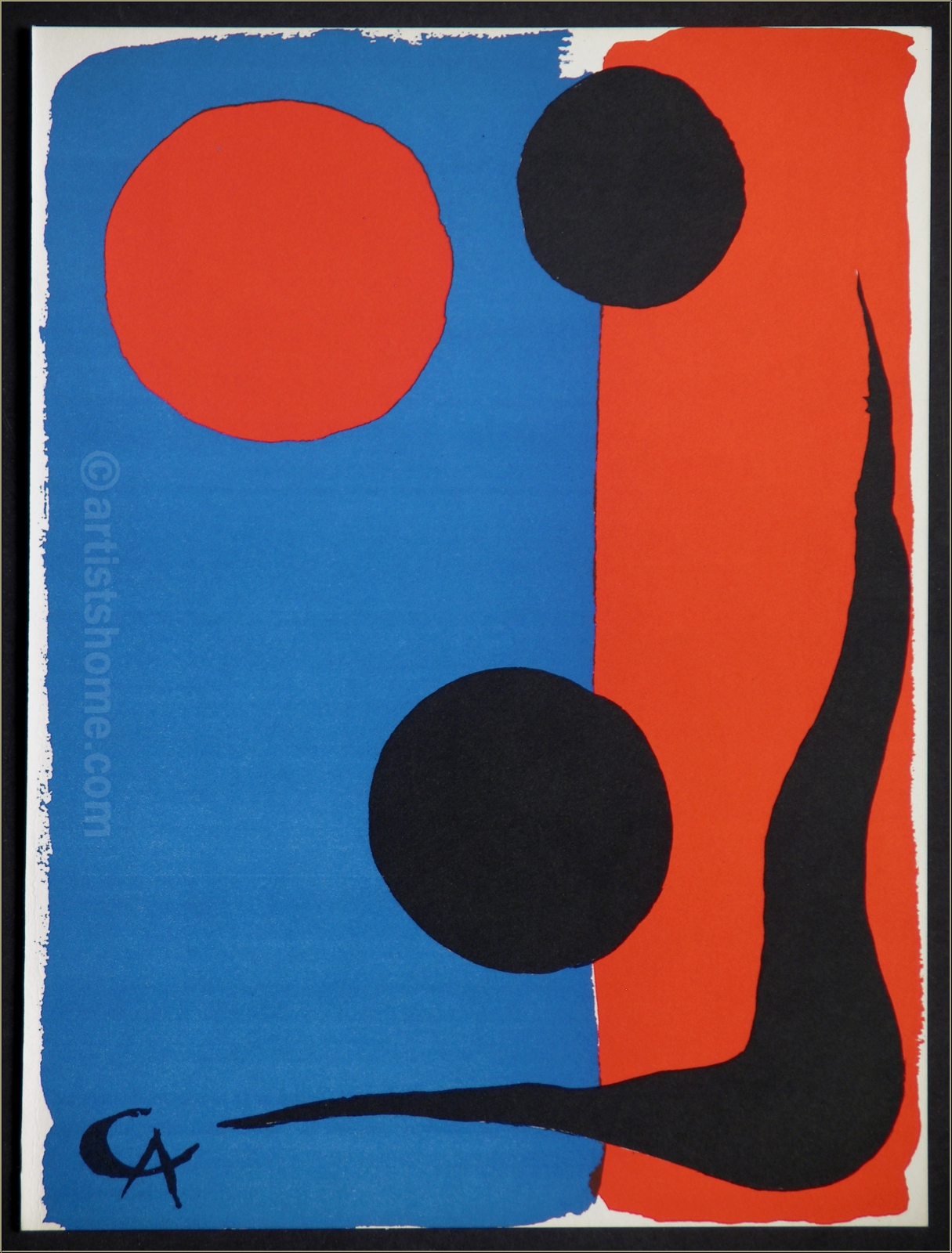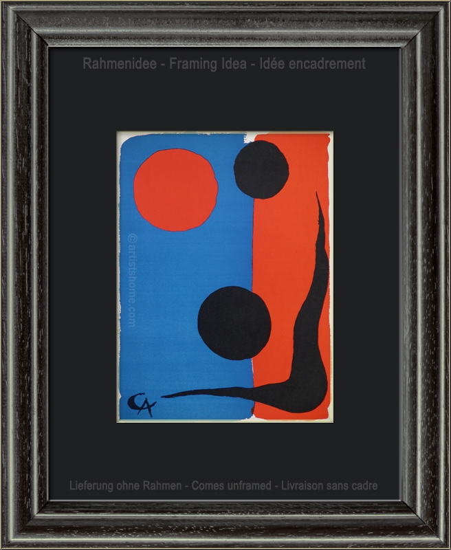 Details:Abstraktion auf Rot und Blau (Lithographie für Maeght und Redfern) Abstrakte Arbeit mit einem roten und zwei schwarzen Kreisen auf Blau und Rot. Im Stein monogrammiert "CA". Diese Originalgrafik wurde zusammen mit Arbeiten weiterer Künstler auf Büttenpapier für den aufwändig gemachten Ausstellungskatalog "Graphik, Lithographien und illustrierte Originalbücher des Maeght-Verlags" von der Redfern-Galerie in London herausgegeben und ist heute wegen ihrer Seltenheit ein gesuchtes Sammlerstück.