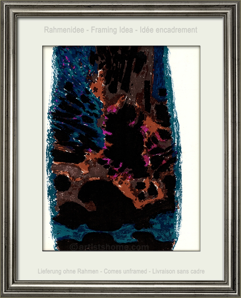 | Technik: | Original-Farblithographie | | Jahr: | 1962 | | Größe: | 31 x 24 cm (Blattgröße) | | Auflage | Papier: | Eines von 2.500 unsignierten Exemplaren für die Buchauflage auf glattem Velin. Zusätzlich wurden seinerzeit 75 Exemplare mit breitem Rand gedruckt und von Manessier signiert. Rückseitig betitelt "Manessier. Croquis. Lithographie originale..." (s. Foto 2). | | Verleger: | XXe Siècle, Paris | | Druck: | Mourlot, Paris | Werkverzeichnis/ Referenz: | XXè Siècle, Nouvelle série, n° 20, Paris 1962 Sie erhalten mit der Lieferung einen Identitätsnachweis (ohne Preisangabe), falls das Blatt verschenkt werden soll. | | Zustand: | Erläuterungen hierzu Sehr schönes, unberührtes Exemplar aus dem Archiv. Lieferung ohne Rahmen. | Dieses Blatt wird durch unseren Geschenk-Service verpackt Kundenbewertungen Bisher wurde noch keine Bewertung abgegeben. Bewertungen können nur von Kunden geschrieben werden, die den Artikel gekauft haben und eingeloggt sind. Ihre persönlichen Daten werden automatisch anonymisiert (Beispiel: "Jens H., Deutschland").  *Gültig für Lieferungen nach Deutschland bei Zahlung per PayPal. Bei Zahlung per Banküberweisung verlängert sich die Lieferzeit um 1-3 Tage ab dem Tag, an dem Sie überwiesen haben. Lieferzeiten für andere Länder sowie Informationen zur Berechnung des Liefertermins finden Sie hier |