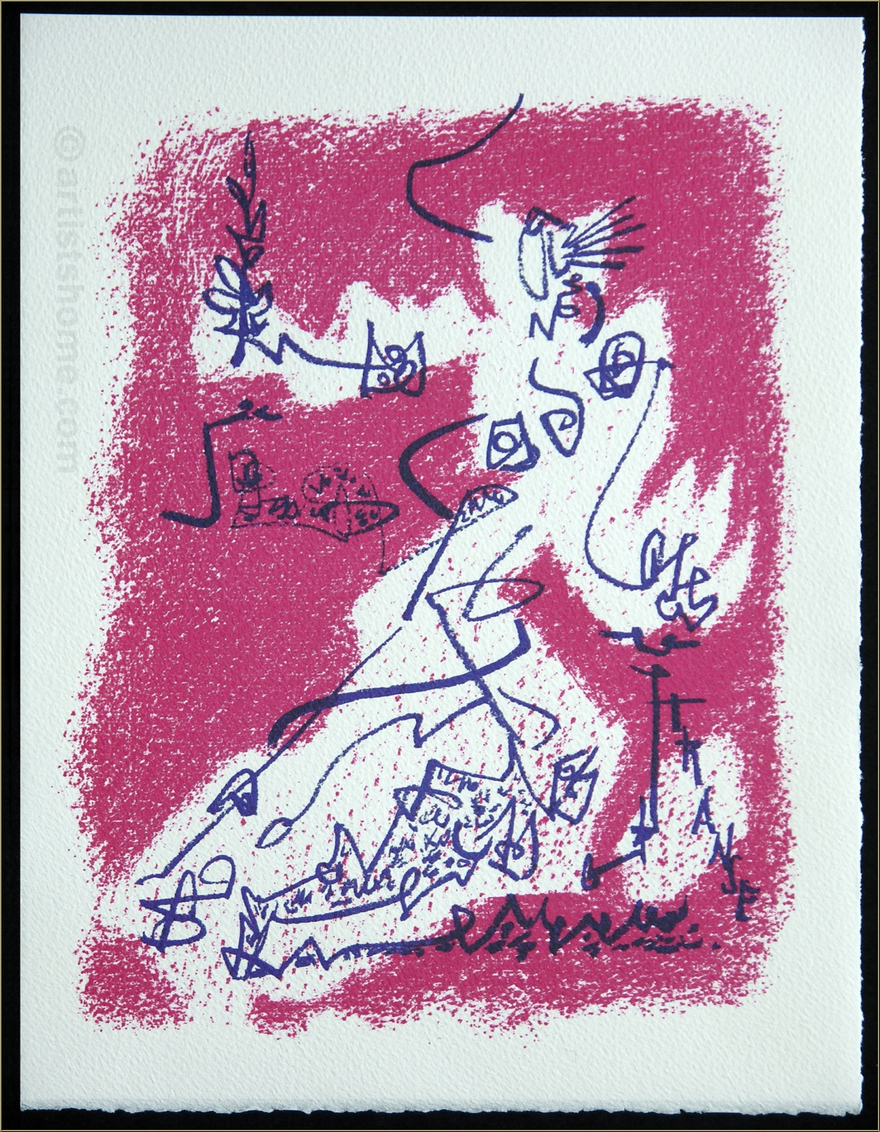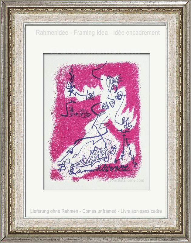 | | "Le départ" (Der Aufbruch, die Abreise) Diese abstrakte Komposition in leuchtendem Pink war der Beitrag Massons zu einem illustrierten Band, mit dem der Meisterdrucker und -lithograph Fernand Mourlot seiner langjährigen Zusammenarbeit mit den ganz Großen der bildenden Kunst aus der Ecole de Paris gedachte. Einige von ihnen, darunter Braque, Matisse, Villon und Giacometti, lebten bei Erscheinen des Portfolios bereits nicht mehr, andere - wie Picasso - starben kurz darauf. Souvenirs et portraits d'artistes gilt deshalb als Vermächtnis des begnadeten Handwerkers und Verlegers. Dies ist KEINE später gedruckte Massenware (Kunstdruck wie z.B. Grano- oder Photo-Lithographie), sondern die Original-Lithographie aus der Vorzugsausgabe von Mourlots Buch über sein Lebenswerk. | Auflage / Jahr: | Eines von 800 unsignierten Exemplaren der Vorzugsausgabe | | Größe: | 32,5 x 25 cm (Blattgröße) | | Verleger: | Alain C. Mazo, Paris u. Léon Amiel, New York, 1972 | | Anmerkung: | Rücks. typografisch bezeichnet: "André Masson - Le départ - Lithographie originale" | Werkverzeichnis/ Referenz: | Verweis: https://mourlot.com: "Livres de Fernand Mourlot" (in französischer Sprache) | | | Dieses Blatt wird durch unseren Geschenk-Service verpackt Kundenbewertungen Bisher wurde noch keine Bewertung abgegeben. Bewertungen können nur von Kunden geschrieben werden, die den Artikel gekauft haben und eingeloggt sind. Ihre persönlichen Daten werden automatisch anonymisiert (Beispiel: "Jens H., Deutschland").  *Gültig für Lieferungen nach Deutschland bei Zahlung per PayPal. Bei Zahlung per Banküberweisung verlängert sich die Lieferzeit um 1-3 Tage ab dem Tag, an dem Sie überwiesen haben. Lieferzeiten für andere Länder sowie Informationen zur Berechnung des Liefertermins finden Sie hier |
