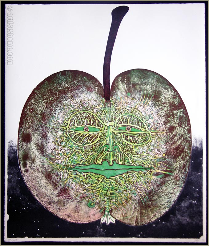 | | "Schafsnase" (Apfelsorte) - 1973 Original-Farblithographie, typische Arbeit aus Jägers "Menschenzoo mit allerlei Getier", das sowohl Kleider als auch Haut abgelegt hat und dem Betrachter nun sein Innenleben präsentiert. | Jahr: | 1973 | | Größe: | 76 x 64 cm (Blatt) | | Auflage | Papier: | Eines von 100 signierten, datierten, betitelten und nummerierten oder bezeichneten Exemplaren auf Bütten | | Verleger: | Edition Brusberg, Hannover | | Druck: | Bernhard Jäger | | Anmerkungen: | Für Bernhard Jäger hatte die Druckgrafik stets die gleiche Wichtigkeit wie seine Malerei und Zeichnungen, sie bedingten sich sogar wechselseitig in seinem künstlerischem Wachstum. Als Perfektionist und Vollbluthandwerker wiederum war nicht nur der Prozess des Lithografierens für ihn von Bedeutung, sondern auch der komplexe Druckvorgang.So gründete er schon früh (1961) zusammen mit Thomas Bayrle eine eigene Druckwerkstatt, die Gulliver-Presse, und druckte fast seine gesamte Grafik selbst. | Werkverzeichnis/ Referenz: | Roh, Juliane. Deutsche Kunst seit 1960 - Druckgraphik. Bruckmann, München, 1974, Seiten 29 und 195-196 (Werkliste) Brusberg Berichte 23, Editionskatalog. Galerie Brusberg, Hannover, 1977, Seite 44 | | Zustand: | Erläuterungen hierzu Schönes, sauberes Exemplar mit kleinen Griffknicklein im breiten Rand | Kundenbewertungen Bisher wurde noch keine Bewertung abgegeben. Bewertungen können nur von Kunden geschrieben werden, die den Artikel gekauft haben und eingeloggt sind. Ihre persönlichen Daten werden automatisch anonymisiert (Beispiel: "Jens H., Deutschland").  *Gültig für Lieferungen nach Deutschland bei Zahlung per PayPal. Bei Zahlung per Banküberweisung verlängert sich die Lieferzeit um 1-3 Tage ab dem Tag, an dem Sie überwiesen haben. Lieferzeiten für andere Länder sowie Informationen zur Berechnung des Liefertermins finden Sie hier |
