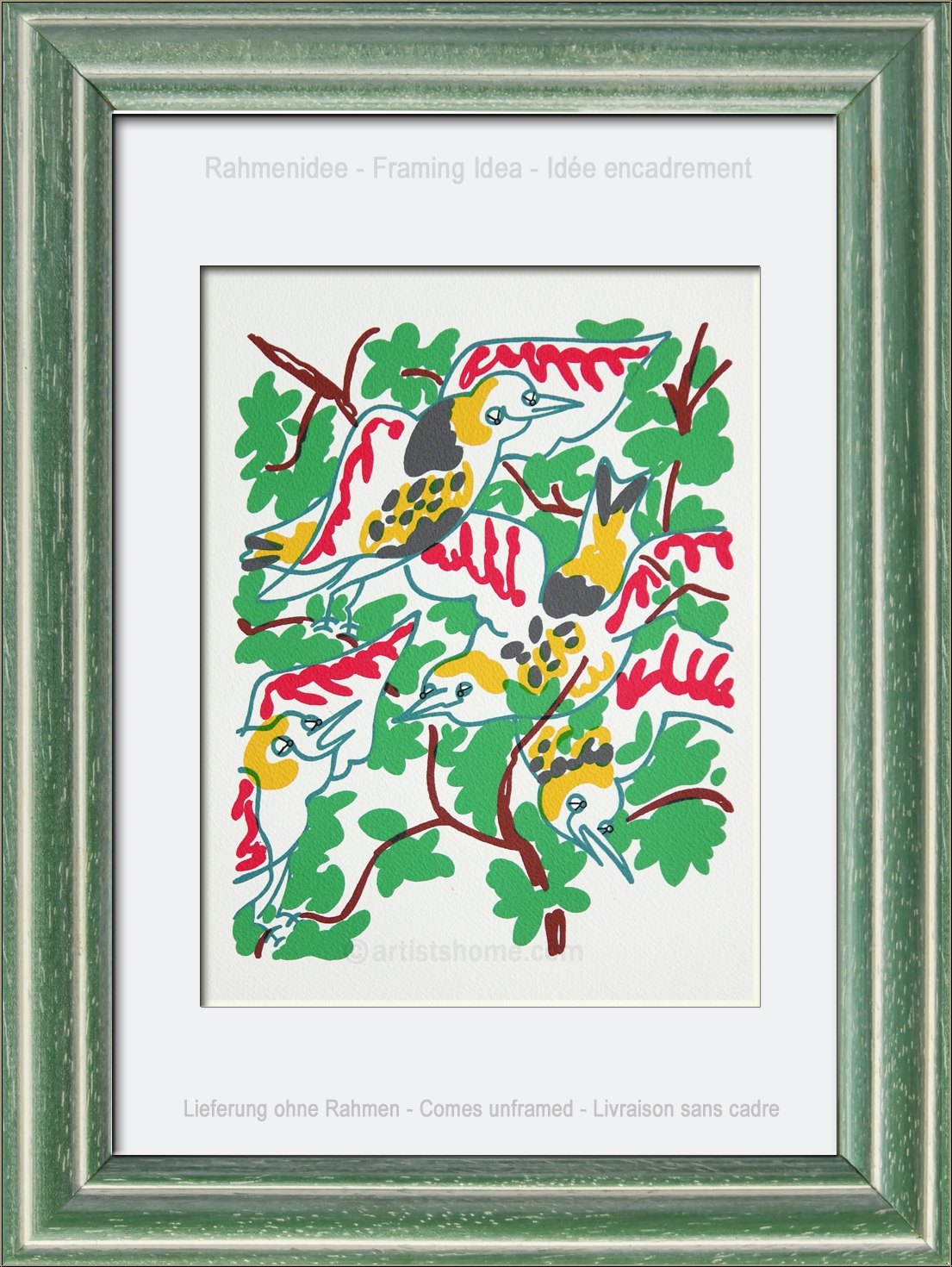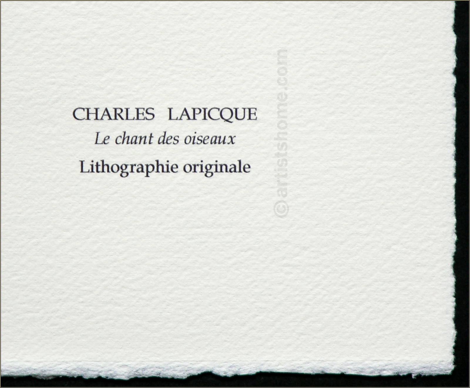 | | "Le chant des oiseaux" Der Gesang der Vögel Vier zwitschernde Vögel auf einem Baum sitzend - dieses fröhlich-bunte Werk war der Beitrag des französischen Malers Charles Lapicque zu dem aufwendig illustrierten Band, mit dem der Meisterdrucker und -lithograph Fernand Mourlot seiner langjährigen Zusammenarbeit mit den ganz Großen der bildenden Kunst aus der Ecole de Paris gedachte. Einige von ihnen, darunter Braque, Matisse, Villon und Giacometti, lebten bei Erscheinen des Portfolios bereits nicht mehr, andere - wie Picasso - starben kurz darauf. Souvenirs et portraits d'artistes gilt deshalb als Vermächtnis des begnadeten Handwerkers und Verlegers. | Künstler: | Charles Lapicque *1898 Theizét, Frankreich - †1988 Orsay, Frankreich | | Technik: | Original-Farblithographie (Steindruck, abgezogen bei Mourlot) Dies ist KEINE später gedruckte Massenware (Kunstdruck wie z.B. Grano- oder Foto-Lithographie), sondern die Original-Lithographie aus der Vorzugsausgabe von Fernand Mourlots Buch über sein Lebenswerk. ACHTUNG: aktuell werden identisch aussehende Drucke im Internet für kleines Geld angeboten - hierbei handelt es sich um unauthorisierte, spätere Nachdrucke (Raubkopien). Diese Grafiken sind keine Original-Lithographien! | | Jahr: | 1972 | | Größe: | 32,5 x 25 cm (Blattgröße) | | Auflage | Papier: | Eines von nur 800 unsignierten Exemplaren auf cremefarbenem Arches Bütten. Rückseitig typografisch bezeichnet: Charles Lapicque - Le chant des oiseaux - Lithographie originale | | Verleger: | Alain C. Mazo, Paris u. Léon Amiel, New York, 1972 | | Druck: | Mourlot, Paris | Werkverzeichnis/ Referenz: | Verweis: https://mourlot.com: "Livres de Fernand Mourlot" (in französischer Sprache) Sie erhalten mit der Lieferung einen Identitätsnachweis (ohne Preisangabe, falls das Blatt verschenkt werden soll). Außerdem erhalten Sie eine Kopie der Impressumseite mit der Nummerierung aus der Originalkassette zu Ihrem Blatt. | | Zustand: | Erläuterungen hierzu Makelloses Exemplar aus dem Archiv. In diesem Zustand selten! Lieferung ohne Rahmen. | Dieses Blatt wird durch unseren Geschenk-Service verpackt Kundenbewertungen Bisher wurde noch keine Bewertung abgegeben. Bewertungen können nur von Kunden geschrieben werden, die den Artikel gekauft haben und eingeloggt sind. Ihre persönlichen Daten werden automatisch anonymisiert (Beispiel: "Jens H., Deutschland").  *Gültig für Lieferungen nach Deutschland bei Zahlung per PayPal. Bei Zahlung per Banküberweisung verlängert sich die Lieferzeit um 1-3 Tage ab dem Tag, an dem Sie überwiesen haben. Lieferzeiten für andere Länder sowie Informationen zur Berechnung des Liefertermins finden Sie hier |