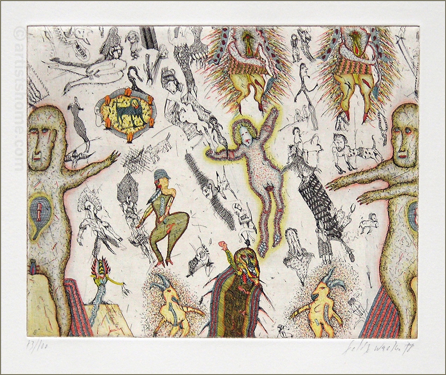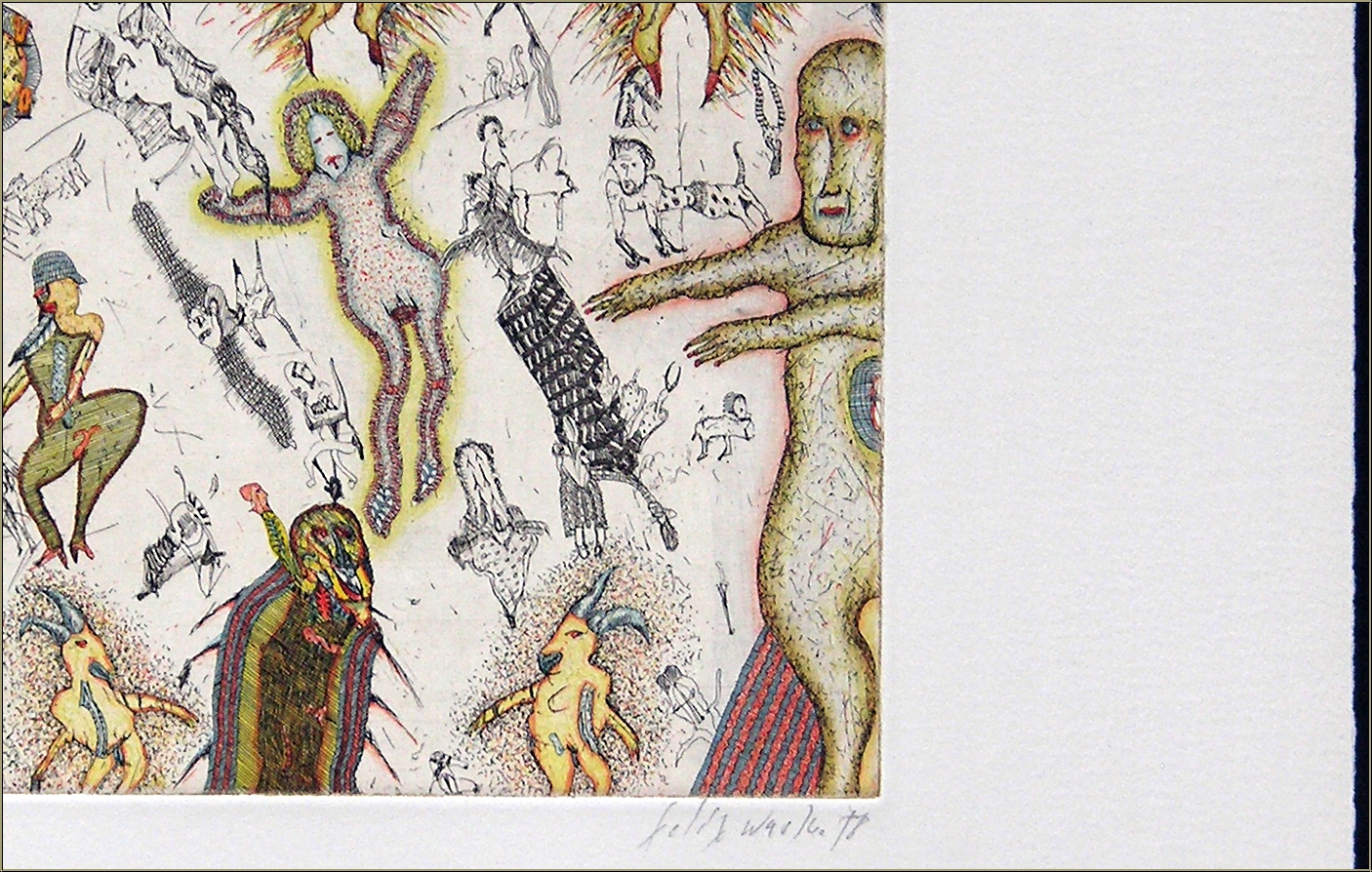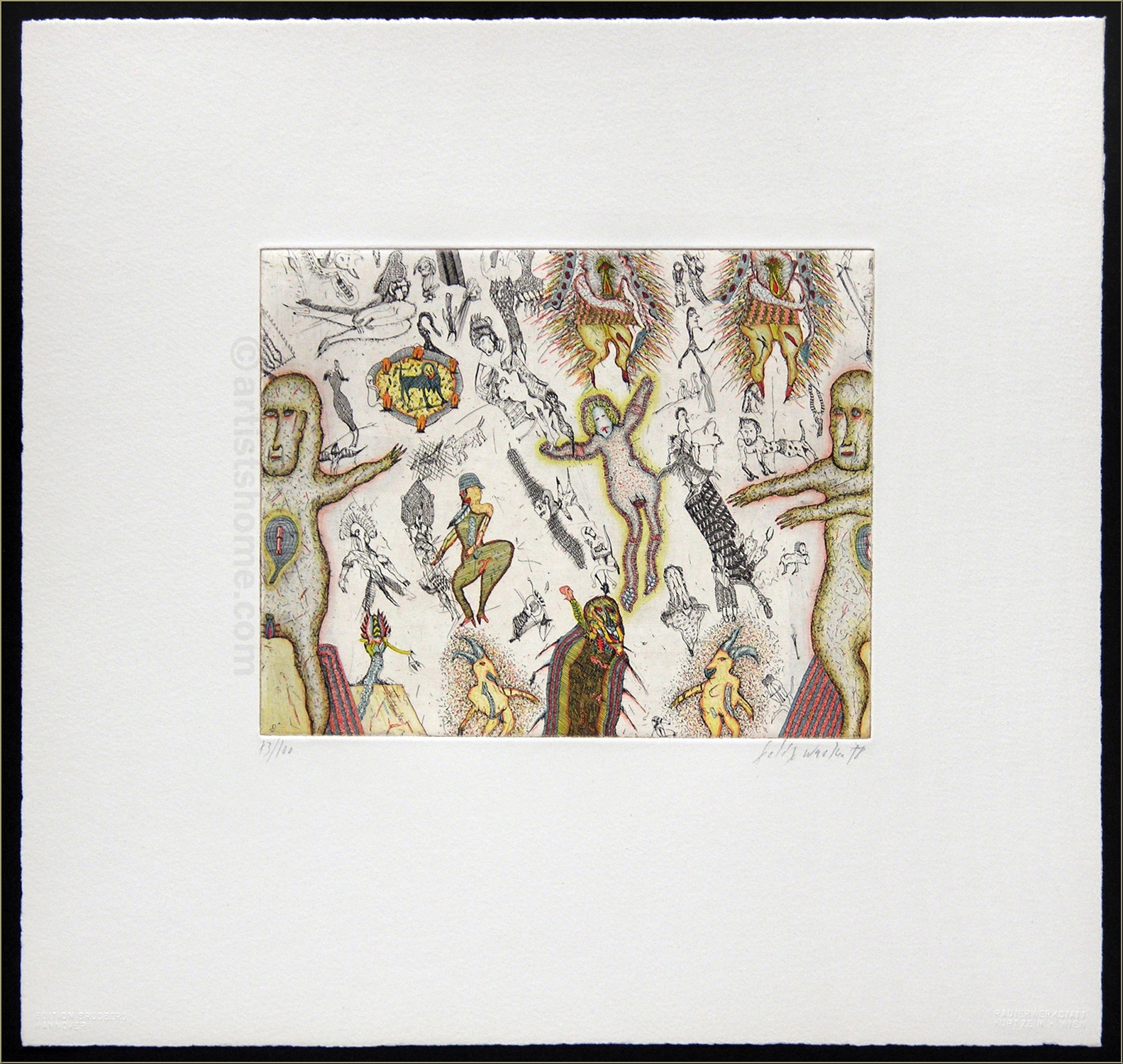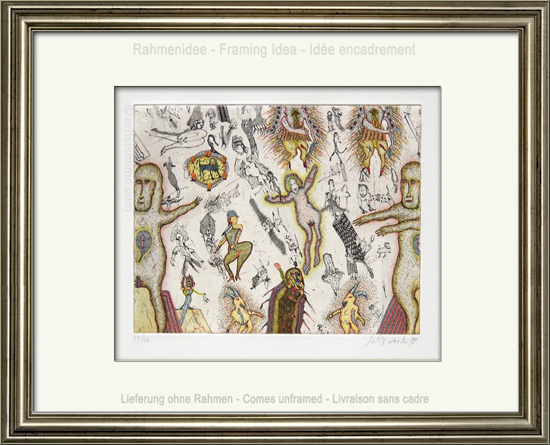 Details:"Journey to Soul" (Reise ins Innere) - 6 - Getrenntes Paar Außergewöhnlich aufwendige Kaltnadelradierung des Österreichers zum Thema "Alltagsszenen einer Ehe" für 'Kupferne Erzählungen' von 1978. Auf kräftigem Arches Bütten, signiert, datiert und nummeriert, eines von 100 Exemplaren. Die perfekte Geschenkidee für Liebespaare mit Fernbeziehung - aus welchem Grund auch immer.