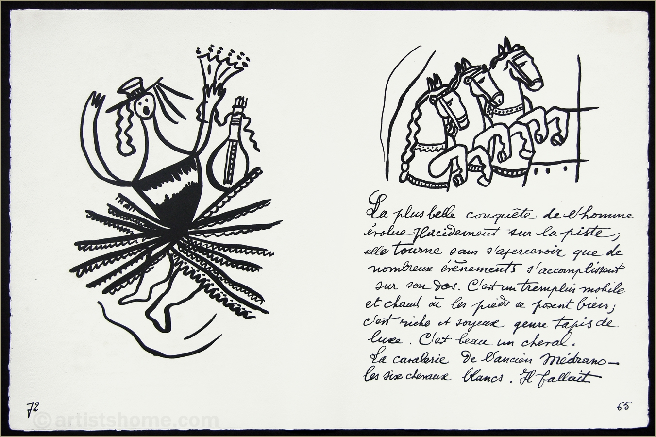 "Cirque" gilt als eines der schönsten Künstlerbücher der zeitgenössischen Kunst und ist Fernand Légers bedeutendstes grafisches Werk: es umfasst nahezu die Hälfte all seiner jemals gefertigten Originalgrafiken. Das vollständige Kompendium enthielt 34 Original-Farblithographien und 29 Original-Lithographien in schwarz, die einzeln im maßgeblichen Werkverzeichnis [Saphire] aufgeführt sind. Auch die anderen Elemente (der gesamte Text incl. der Seitenzahlen und die kleinen Vignetten innerhalb der Texte) sind von Léger selbst gefertigt und somit Originallithographien. "Cirque" erschien 1950 in nur kleiner Auflage und ist deshalb heute ein begehrtes und seltenes Objekt auf Auktionen international renommierter Häuser.