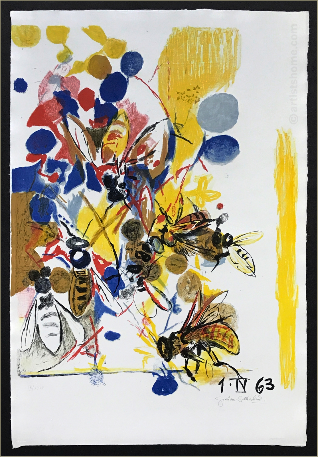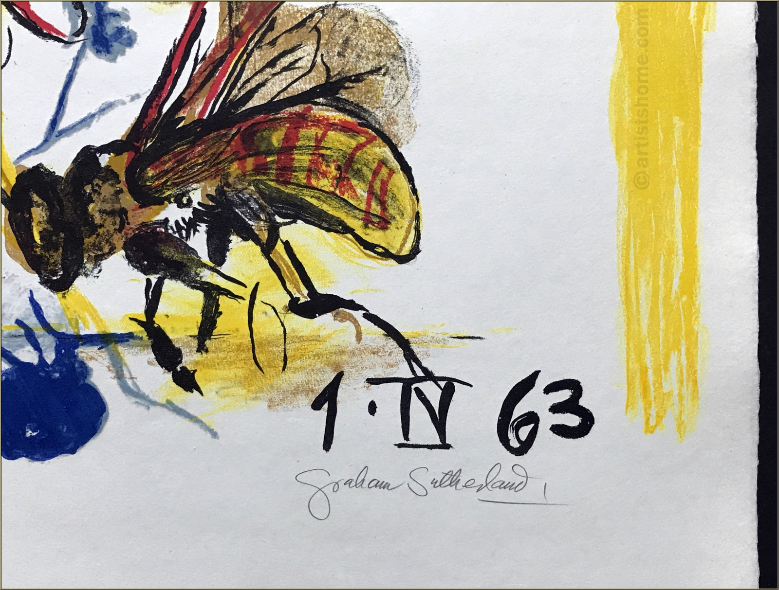 Details:"Bees" (Bienen), 1963 Bienen zählen zu den wichtigsten Tieren unseres Planeten. Nicht erst seit Beginn dieses Jahrtausends sind wir jedoch auf breiter Ebene mit einem globalen Bienensterben durch Milben, Pestizide, fehlende Wildblumen und wegen monotoner Landwirtschaft konfrontiert. Auch schon zuvor war in immer häufigeren Abständen eine massive Insekten- und Bienensterblichkeit zu beklagen - vielleicht der Anlass für Graham Sutherland, sich 1963 der Honigbiene zu widmen. Weitere Grafiken mit "Kleingetier" folgten 1967 und 1968: "Beetles" (Käfer), 1967, "Ants" (Ameisen), 1968, und schließlich "Insect" (Insekt), 1968.