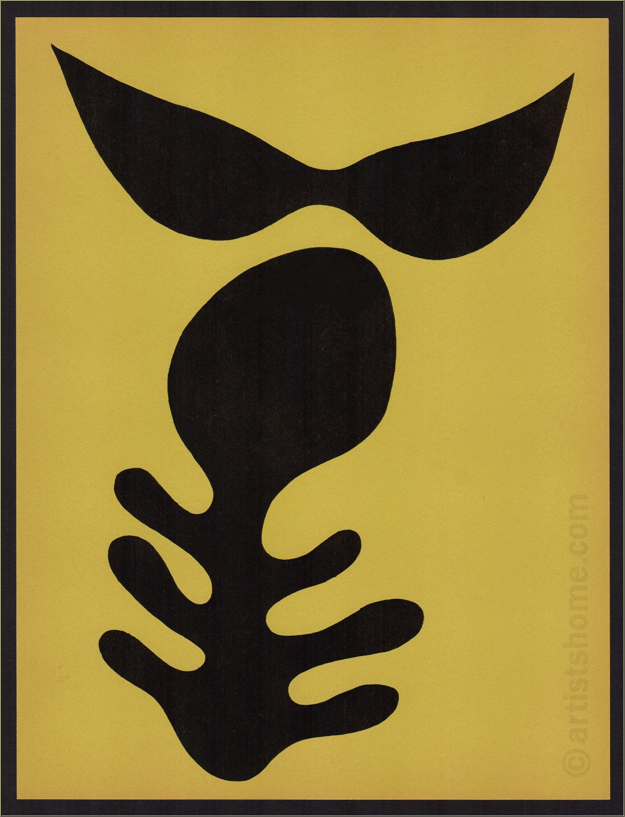 Details:"Moustache et squelette" - 1957 *Pochoir oder auch Stencil sind französisch- bzw. englischsprachige Bezeichnungen für mittels Schablonendruck vervielfältigte Grafiken, die bevorzugt in den Jahren nach dem 2. Weltkrieg hergestellt wurden.