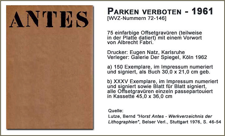 Horst Antes: 'Parken verboten' 1961 mit 75 Original-Offsetgravüren, im Impressum signiert - Originale, Werke