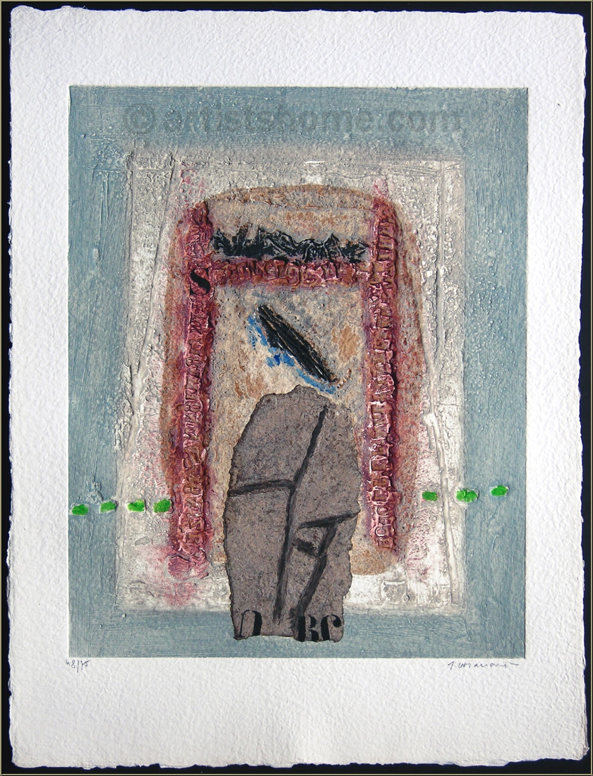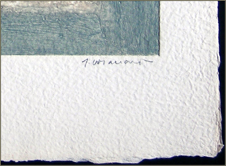 | | "Mouvement Lineaire Vert" - 1980 Große, prächtige Carborundum-Radierung in 9 Farben mit Collage auf handgeschöpftem, extrem dickem Bütten. Signiert u. nummeriert. | Auflage: | 75 numm. Expl. + 10 e.a.; Die Platte wurde nach Drucklegung zerstört, um unauthorisierte Nachdrucke zu verhindern. | | Größe: | 65 x 50 cm (Blatt), 49,5 x 38,5 cm (Darstellung) | | Papier: | Papier à la forme du Moulin de Larroque Colombe (extrem dickes, handgeschöpftes Büttenpapier, hergestellt in einer mittelalterlichen Papiermühle im Südwesten Frankreichs). | | Verleger: | B.R./Garbis, Paris | | Drucker: | Atelier Barbara, Nizza | Werkverzeichnis/ Referenz: | Bergström, Gunnar et al. James Coignard. Catalogue raisonné de l'Oeuvre gravé III (1980-1986), Editions Sonet, Lidingö 1986, S. 22, N° 464, mit Abb. Sie erhalten mit der Lieferung den Auszug aus dem o.g. Werkverzeichnis | | | Kundenbewertungen Bisher wurde noch keine Bewertung abgegeben. Bewertungen können nur von Kunden geschrieben werden, die den Artikel gekauft haben und eingeloggt sind. Ihre persönlichen Daten werden automatisch anonymisiert (Beispiel: "Jens H., Deutschland").  *Gültig für Lieferungen nach Deutschland bei Zahlung per PayPal. Bei Zahlung per Banküberweisung verlängert sich die Lieferzeit um 1-3 Tage ab dem Tag, an dem Sie überwiesen haben. Lieferzeiten für andere Länder sowie Informationen zur Berechnung des Liefertermins finden Sie hier |