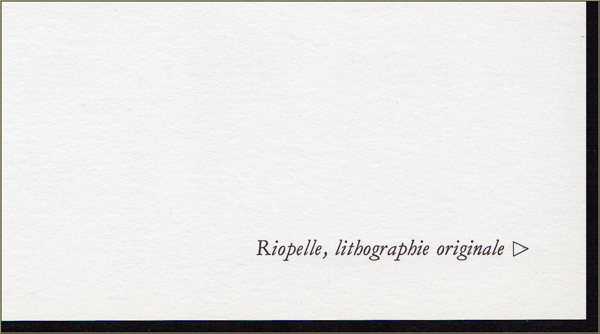 | | Original-Farblithographie des kanadischen Künstlers Jean-Paul Riopelle aus dem obigen Portfolio, das 1982 anläßlich des Todes des bekannten französischen Verlegerpaares Maeght (1981 starb Aimé Maeght, 4 Jahre nach seiner Frau) von 24 "seiner" Künstler mit Originalgrafik ausgestattet wurde. | | Signiert: | unsigniert, wie 1982 erschienen. | | Verleger: | Galerie Maeght, Paris, 1982 | | Anmerkungen: | Rückseitig typographisch bedruckt. Der gezeigte Titel "Riopelle, lithographie originale" steht auf der vorhergehenden Seite, die Ihnen in Kopie mitgeliefert wird. | Werkverzeichnis/ Referenz: | Maeght Éditeur. Derriere le miroir 1946-1982. Maeght, Paris, 1983, S. 110 | | Dieses Blatt wird durch unseren Geschenk-Service verpackt Kundenbewertungen Bisher wurde noch keine Bewertung abgegeben. Bewertungen können nur von Kunden geschrieben werden, die den Artikel gekauft haben und eingeloggt sind. Ihre persönlichen Daten werden automatisch anonymisiert (Beispiel: "Jens H., Deutschland").  *Gültig für Lieferungen nach Deutschland bei Zahlung per PayPal. Bei Zahlung per Banküberweisung verlängert sich die Lieferzeit um 1-3 Tage ab dem Tag, an dem Sie überwiesen haben. Lieferzeiten für andere Länder sowie Informationen zur Berechnung des Liefertermins finden Sie hier |