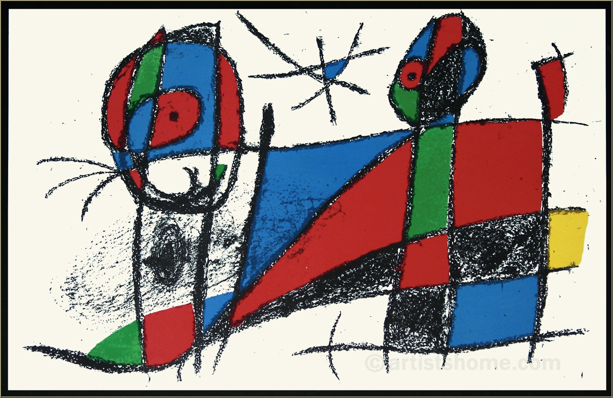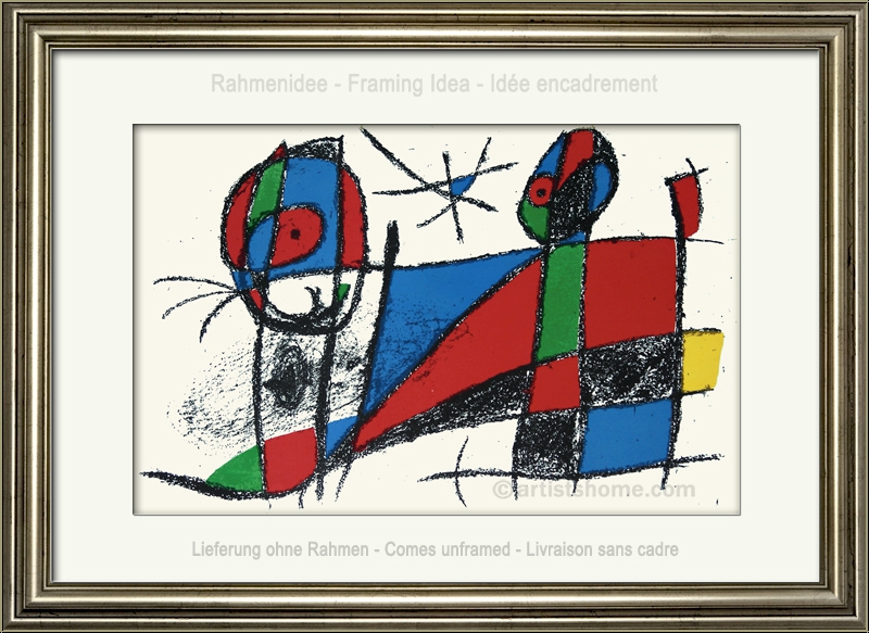 Joan Miró zeichnete dieses Motiv persönlich auf den Stein, von dem dann die Lithographien abgezogen wurde. Sie wurden dem zweiten Band seines Oeuvre-Verzeichnisses beigebunden, der 1975 erschien.