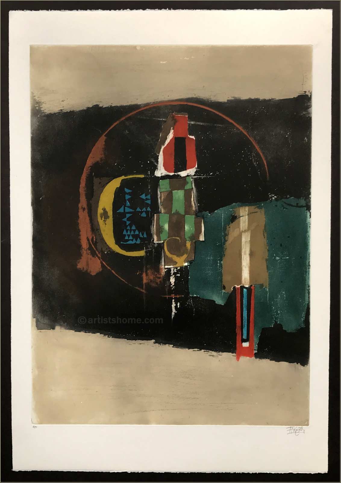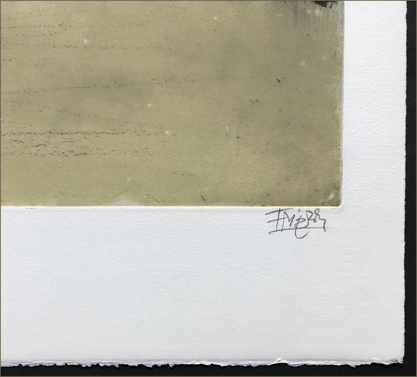 Details:"À contretemps" (Begriff aus der Musik, s. "Offbeat") Immer wieder hat Johnny Friedlaender Radierungen zum Thema Musik in sein grafisches Werk "eingebaut", je älter er wurde, desto wichtiger wurde sie ihm offensichtlich. In einem Interview für den dritten Band des Werkverzeichnisses befragt, ob er denn Musik in seinen Grafiken sichtbar machen wolle, antwortete der Künstler, dass dies eine Unmöglichkeit sei. Vielmehr wünsche er sich, dass man beim Betrachten seiner Kunst an Musik denkt, aus der Sehnsucht heraus, Musik machen zu wollen und es nicht zu können. Was Friedlaender mit dieser herrlichen Aquatintaradierung zweifellos gelungen ist, ist der künstlerische Brückenschlag zwischen den beiden Disziplinen Malerei und Musik. Hier eines von 95 nummerierten und signierten Exemplaren auf Büttenpapier.