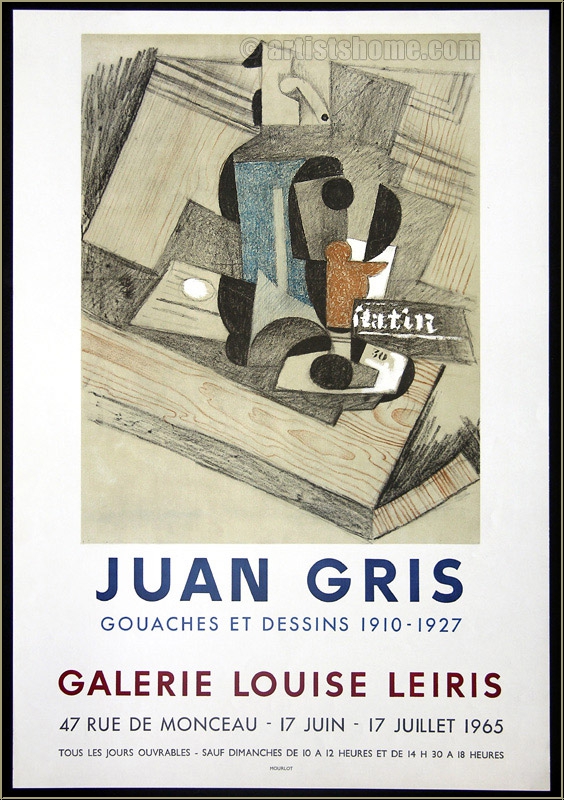Details:"Juan Gris - Gouaches et Dessins 1910 - 1927", 1965 Ausstellungsplakat mit einer Farblithographie für die Juan Gris-Retrospektive bei Louise Leiris, Paris