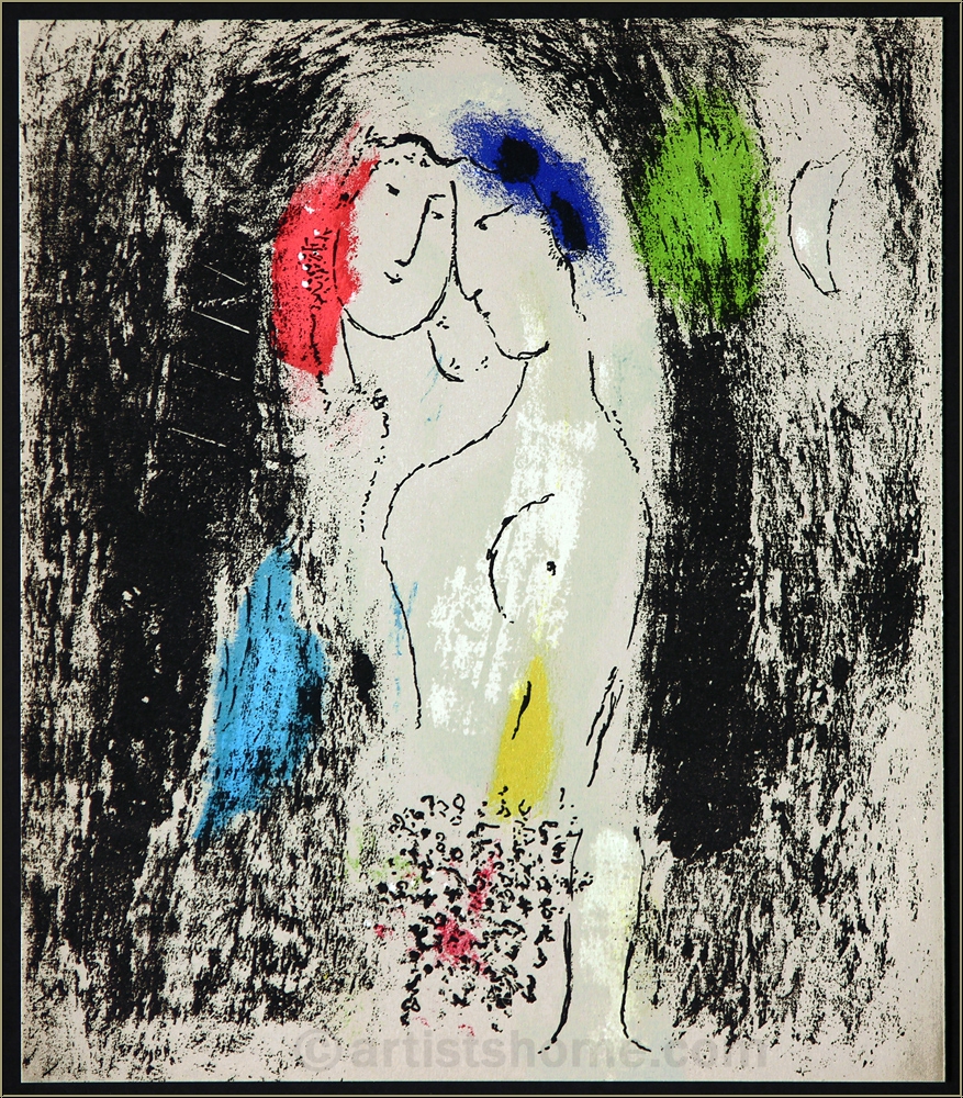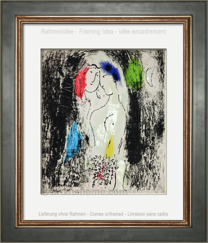 | | "Die Verliebten in Grau / Les Amoureux en gris" Zärtlichkeit und Vertrautheit scheinen dieses ernst und versonnen dreinschauende Paar zu verbinden. Alles um sie herum liegt im Dunkeln, wurde ganz bewusst ausgeblendet, um die Bedeutung dieses innigen Moments zu verstärken. Dieses Bild ist eine von mehreren Liebesszenen, mit denen Marc Chagall die bedeutende Monographie über sein Leben bis 1957 ausstattete und sie damit auch zu einer Biographie werden ließ. | Technik: | Original-Farblithographie (Mourlot 194) Hinweis: Dies ist KEIN Kunstdruck, sondern die Original-Lithographie (Steindruck), wie sie exakt so auch im Werkkatalog verzeichnet ist! Achtung: es existieren zahlreiche Nachdrucke (Reproduktionen) aus einer nicht authorisierten, späteren Auflage. Diese Drucke sind keine Original-Lithographien, sondern wertlose Raubkopien! Aktuell werden zudem verkleinerte Fälschungen als Originale angeboten. | | Jahr: | 1957 | | Größe: | 23 x 20 cm (Blattgröße) | | Auflage | Papier: | Hier eines von 6000 unsignierten Exemplaren auf dünnem Velin. Zusätzlich wurden damals 90 Exemplare auf Arches Bütten mit breitem Rand gedruckt und vom Künstler signiert und nummeriert. | | Verleger: | Maeght Editeur, Paris | | Druck: | Mourlot, Paris | Werkverzeichnis/ Referenz: | Mourlot, Fernand. Chagall Lithograph [II] 1957-1962, André Sauret, Monte-Carlo 1963, Seiten 20-29, Nr. 194 Sie erhalten mit der Lieferung den Auszug aus diesem Verzeichnis, sowie zusätzlich einen Identitätsnachweis (ohne Preisangabe), falls das Blatt verschenkt werden soll. | | Zustand: | Erläuterungen hierzu Sehr schönes, farbfrisches Exemplar aus dem Archiv. Lieferung ohne Rahmen. | Dieses Blatt wird durch unseren Geschenk-Service verpackt Kundenbewertungen Bisher wurde noch keine Bewertung abgegeben. Bewertungen können nur von Kunden geschrieben werden, die den Artikel gekauft haben und eingeloggt sind. Ihre persönlichen Daten werden automatisch anonymisiert (Beispiel: "Jens H., Deutschland").  *Gültig für Lieferungen nach Deutschland bei Zahlung per PayPal. Bei Zahlung per Banküberweisung verlängert sich die Lieferzeit um 1-3 Tage ab dem Tag, an dem Sie überwiesen haben. Lieferzeiten für andere Länder sowie Informationen zur Berechnung des Liefertermins finden Sie hier |