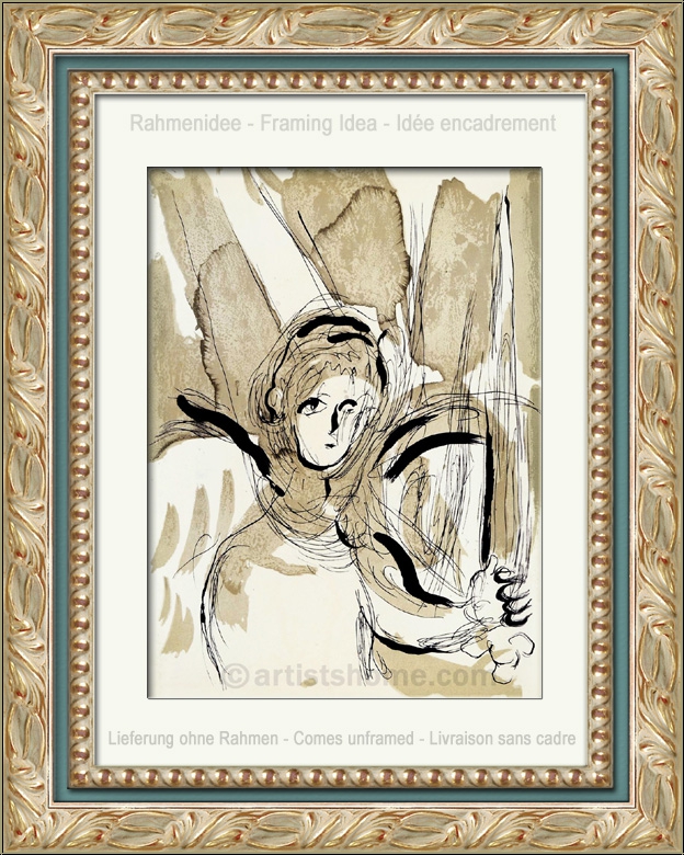 | | "Engel mit Schwert" Original-Lithographie von Marc Chagall für seine berühmte "Bibel I". Dies ist KEIN Kunstdruck (z.B. Grano- oder Offsetlithografie aus einer "limitierten Edition", wie sie zuhauf im Internet angeboten werden), sondern die Original-Lithographie, die exakt so auch im Werkkatalog der Originalgrafik Chagalls verzeichnet ist. | Auflage: | Eines von 6.500 unsignierten Exemplaren auf glattem, kräftigen Velin. Zusätzlich wurden 75 vom Künstler signierte und nummerierte Exemplare auf Arches Bütten aufgelegt. | | Größe: | 35,5 x 26 cm (Darstellung = Blattgröße) | | Verleger: | Éditions de la Revue Verve, Teriade, Paris | | Anmerkungen: | Rückseitig unbedruckt, wie erschienen. Bibelstelle(n), auf die sich das Blatt bezieht: Psalm 91,11; Gen 3,24 Neben den Propheten, Erzvätern, Königen und der Moses-Geschichte hat Marc Chagall in seinem ersten Bibelzyklus auch die Engel bedacht - dies ist eines von insgesamt 4 Engelsmotiven. Die wichtige Doppelausgabe des legendären Kunstmagazins Revue Verve mit seltener Originalgrafik von Marc Chagall wurde 1956 von dem Kunstkritiker und Verleger Tériade in 6.500 Exemplaren herausgegeben. Seither wurden zahllose legitime wie auch illegale Nachdrucke der Bibelmotive Chagalls in den Verkehr gebracht, die so wenig mit Originalgrafik zu tun haben, wie die Bilder in einer Tageszeitung.* | | Werkverzeichnis/ Referenz: | Cain, Julien, u. Mourlot, Fernand. Chagall Lithograph [I], André Sauret, Monte Carlo 1960, S. 149-160, Nr. 119 Sie erhaltenen zusammen mit Ihrem Blatt den vollständigen Auszug aus dem o.g. Werkkatalog, sowie einen Identitätsnachweis (ohne Preisangabe), falls das Blatt verschenkt werden soll. | | | Dieses Blatt wird durch unseren Geschenk-Service verpackt Kundenbewertungen ( 1) 5/5 Kundenbewertungen bei originalgrafik.de:Jede Verbraucherbewertung wird vor ihrer Veröffentlichung auf ihre Echtheit überprüft, sodass gewährleistet ist, dass Bewertungen nur von Verbrauchern stammen, die die bewerteten Produkte auch tatsächlich erworben haben. Diese Überprüfung geschieht a) durch Übermittlung individualisierter Links nach Abschluss einer Online-Bestellung, die zu einem Online-Bewertungsformular führen und sicherstellen, dass der Zugang zur Bewertungsfunktion nur solchen Verbrauchern gewährt wird, die ein Produkt auch tatsächlich erworben haben, oder b) dadurch, dass die Möglichkeit einer Bewertungsabgabe von einer vorherigen Anmeldung in dem registrierten Kundenkonto abhängig gemacht wird, von dem aus ein Kauf getätigt wurde. 5 1 5 03.06.2012 - J. S., Deutschland 2012-06-03 2012-06-03 Bewertungen können nur von Kunden geschrieben werden, die den Artikel gekauft haben und eingeloggt sind. Ihre persönlichen Daten werden automatisch anonymisiert (Beispiel: "Jens H., Deutschland").  *Gültig für Lieferungen nach Deutschland bei Zahlung per PayPal. Bei Zahlung per Banküberweisung verlängert sich die Lieferzeit um 1-3 Tage ab dem Tag, an dem Sie überwiesen haben. Lieferzeiten für andere Länder sowie Informationen zur Berechnung des Liefertermins finden Sie hier |