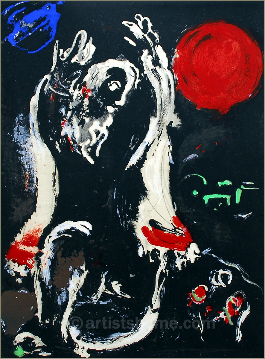 | | "Jesaja" (Die Propheten) Original-Farblithographie von Marc Chagall für seine berühmte "Bibel I". Dies ist KEIN Kunstdruck (z.B. Foto- oder Granolithografie aus einer "limitierten Edition", wie sie zuhauf im Internet angeboten werden), sondern die Original(!)-Lithographie, die exakt so auch im Werkkatalog der Originalgrafik Chagalls verzeichnet ist. | Auflage: | Eines von 6.500 unsignierten Exemplaren auf glattem, kräftigen Velin. Zusätzlich wurden 75 vom Künstler signierte und nummerierte Exemplare auf Arches Bütten aufgelegt. | | Größe: | 35,5 x 26 cm (Darstellung = Blattgröße) | | Verleger: | Éditions de la Revue Verve, Teriade, Paris | | Anmerkungen: | Rückseitig eine weitere, einfarbige Original-Lithographie (Mourlot Nr. 146) Bibelstelle(n), auf die sich das Blatt bezieht: Jes. 24, 1-23; Jes. 1, 1-9; Jes. 2 u. Jes. 3 Neben der Moses-Geschichte, den Königen und Engeln hat Marc Chagall in seinem ersten Bibelzyklus auch die Propheten bedacht. Dieses Motiv ist Jesaja gewidmet, der in Ausübung seines Prophetenamtes heftig zu gestikulieren scheint. Die wichtige Doppelausgabe des legendären Kunstmagazins Revue Verve mit seltener Originalgrafik von Marc Chagall wurde 1956 von dem Kunstkritiker und Verleger Tériade in 6.500 Exemplaren herausgegeben. Seither wurden zahllose legitime wie auch illegale Nachdrucke der Bibelmotive Chagalls in den Verkehr gebracht, die so wenig mit Originalgrafik zu tun haben, wie die Bilder in einer großen Tageszeitung. | | Werkverzeichnis/ Referenz: | Cain, Julien, u. Mourlot, Fernand. Chagall Lithograph [I], André Sauret, Monte Carlo 1960, S. 149-160, Nr. 141 + 146 Sie erhaltenen zusammen mit Ihrem Blatt den vollständigen Auszug aus dem o.g. Werkkatalog, sowie zusätzlich einen Identitätsnachweis (ohne Preisangabe), falls das Blatt verschenkt werden soll. | | | Kundenbewertungen Bisher wurde noch keine Bewertung abgegeben. Bewertungen können nur von Kunden geschrieben werden, die den Artikel gekauft haben und eingeloggt sind. Ihre persönlichen Daten werden automatisch anonymisiert (Beispiel: "Jens H., Deutschland").  *Gültig für Lieferungen nach Deutschland bei Zahlung per PayPal. Bei Zahlung per Banküberweisung verlängert sich die Lieferzeit um 1-3 Tage ab dem Tag, an dem Sie überwiesen haben. Lieferzeiten für andere Länder sowie Informationen zur Berechnung des Liefertermins finden Sie hier |