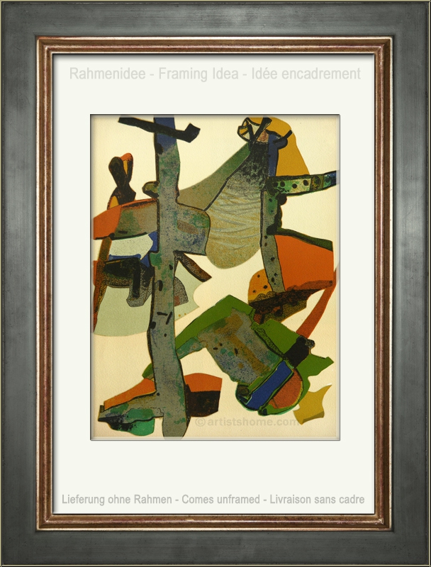 | Original-Farblithographie von Maurice Estève auf Arches Bütten, gedruckt bei Mourlot. | | Größe: | 31 x 24 cm (Blatt) | | Auflage/Papier: | Hier eines der unsignierten Exemplare auf Arches Bütten. Zusätzlich wurden 70 Exemplare auf Arches Bütten mit breitem Rand abgezogen und vom Künstler signiert u. nummeriert. | | Verleger: | Société Internat. d'Art XXè siècle, Paris | | Anmerkung: | Dies ist KEIN Kunstdruck, sondern die Originallithographie! | Werkverzeichnis/ Referenz: | Prudhomme-Estève, M. u. Moestrup, H., Estève, Maurice u . Vallier, Dora. Maurice Estève - L'oeuvre Gravé, Forlaget Cordelia, 1986, S. 104, N° 75, m. Abb. Sie erhalten mit der Lieferung den Auszug aus diesem Verzeichnis, sowie zusätzlich einen Identitätsnachweis (ohne Preisangabe), falls das Blatt verschenkt werden soll. | | Kundenbewertungen Bisher wurde noch keine Bewertung abgegeben. Bewertungen können nur von Kunden geschrieben werden, die den Artikel gekauft haben und eingeloggt sind. Ihre persönlichen Daten werden automatisch anonymisiert (Beispiel: "Jens H., Deutschland").  *Gültig für Lieferungen nach Deutschland bei Zahlung per PayPal. Bei Zahlung per Banküberweisung verlängert sich die Lieferzeit um 1-3 Tage ab dem Tag, an dem Sie überwiesen haben. Lieferzeiten für andere Länder sowie Informationen zur Berechnung des Liefertermins finden Sie hier |