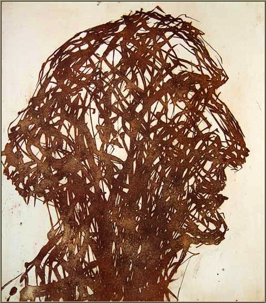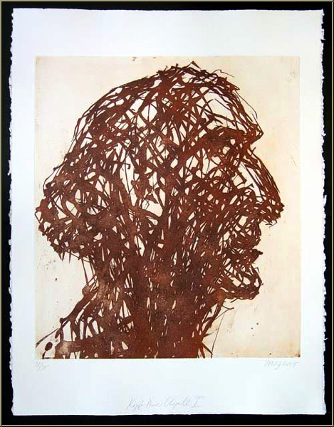 Details:"Kopf Marc Chagall" - Profil in siena Große Originalradierung des Dresdner Malers, in unverwechselbarer Uhligscher Manier. Auf kräftigem Moulin du Gué Bütten, handsigniert.