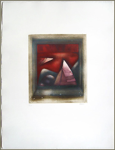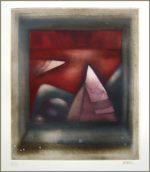 Details:"Le soir" (Der Abend) Abstrakte Originalradierung der Französin Michèle Nedelec in ihren Farben der Dämmerung. Auf BFK Rives Bütten, signiert u. nummeriert.