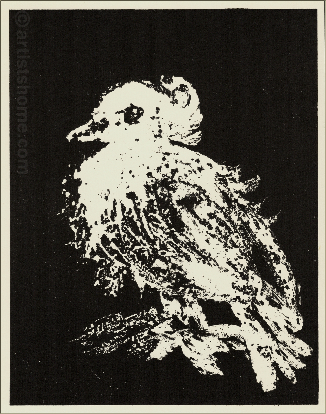 Frühe Frontispiz-Lithographie "Die kleine Taube" auf Vélin Renage-Bütten aus dem Jahr 1949 (Mourlot Nr. 174)
