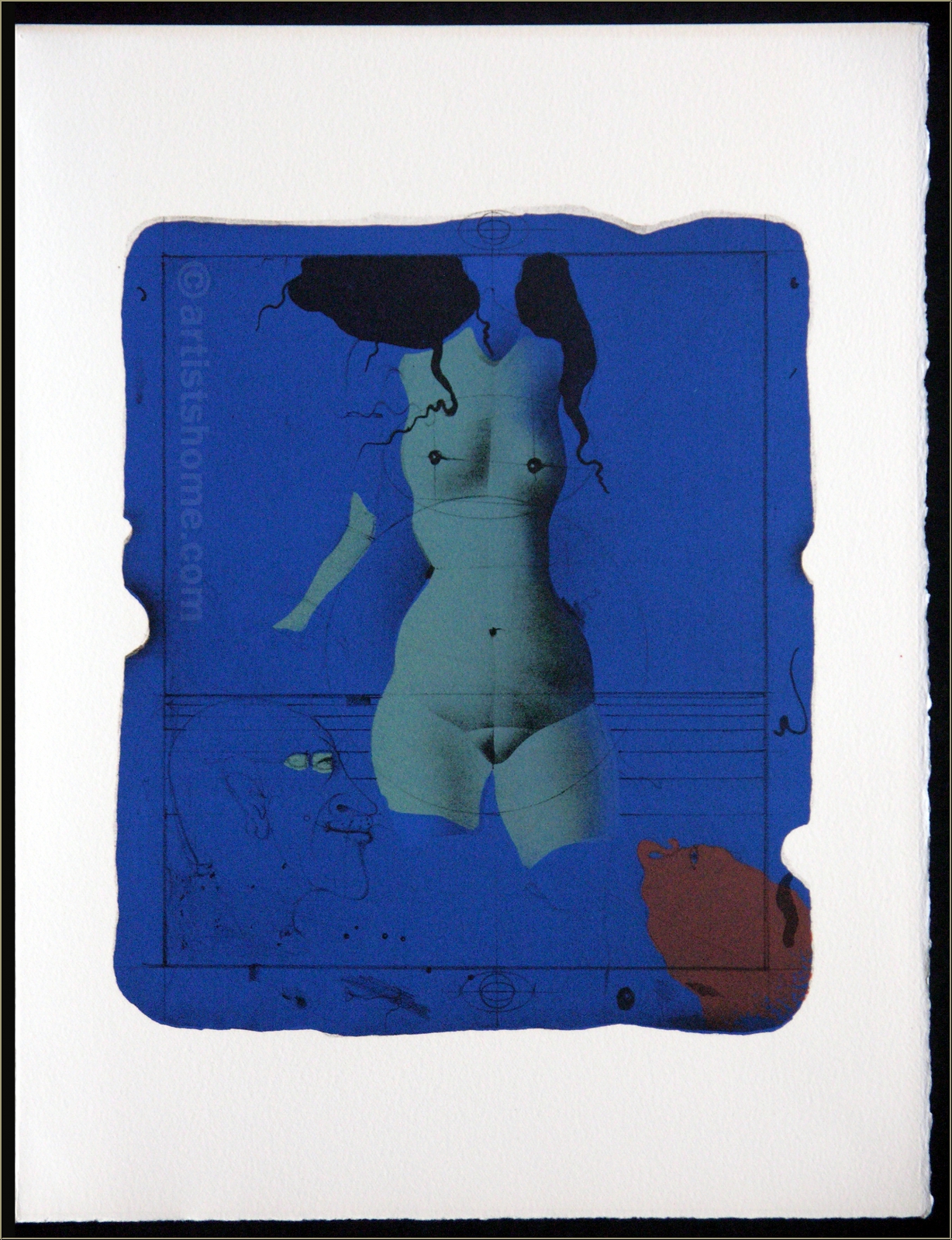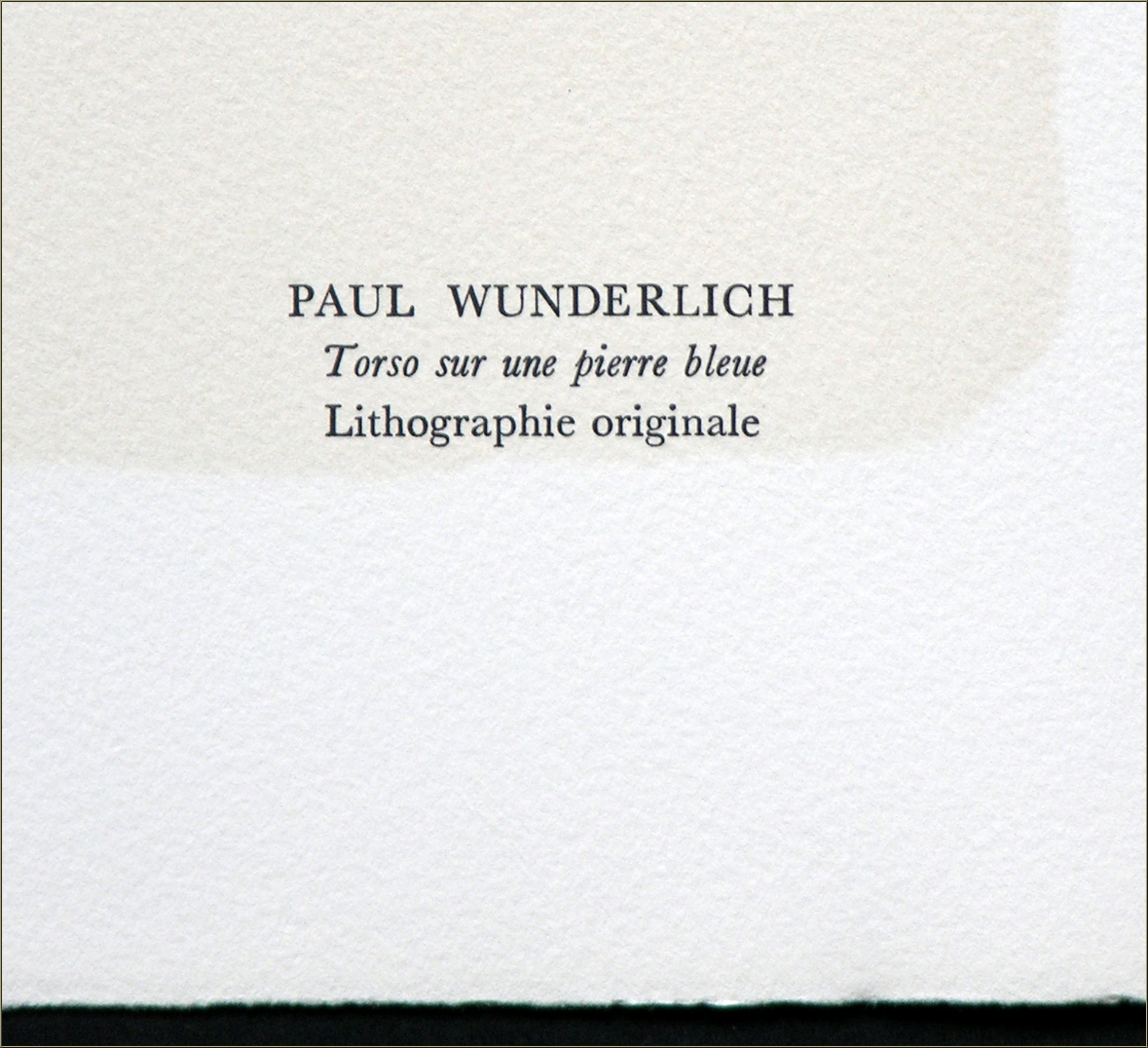 | | Torso sur une pierre bleue (Offizieller Titel: "Kleine Familie") Im maßgeblichen Werkverzeichnis von Wunderlichs Druckgrafik ist dieses Bild vermerkt unter dem Titel "Kleine Familie", und nicht wie bei Mourlot geschrieben "Torso auf einem blauen Stein". Diese Original-Farblithographie in einem herrlichen Blauton war der Beitrag des deutschen Künstlers zu einem illustrierten Band, mit dem der Meisterdrucker und -lithograph Fernand Mourlot seiner langjährigen Zusammenarbeit mit den ganz Großen der bildenden Kunst aus der Ecole de Paris gedachte. Einige von ihnen, darunter Braque, Matisse, Villon und Giacometti, lebten bei Erscheinen des Portfolios bereits nicht mehr, andere - wie Picasso - starben kurz darauf. Souvenirs et portraits d'artistes gilt deshalb als Vermächtnis des begnadeten Handwerkers und Verlegers. Dies ist KEINE später gedruckte Massenware (Kunstdruck wie z.B. Grano- oder Offset-Lithographie), sondern die Original-Lithographie aus der Vorzugsausgabe von Mourlots Buch über sein Lebenswerk, wie sie exakt so auch im Werkkatalog verzeichnet ist. ACHTUNG: aktuell werden identisch aussehende Drucke im Internet für kleines Geld angeboten - hierbei handelt es sich um unauthorisierte, spätere Nachdrucke (Raubkopien). Diese Grafiken sind keine Original-Lithographien! | Auflage: | Eines von 800 unsignierten Exemplaren auf Arches Bütten für die Vorzugsausgabe des oben beschriebenen Portfolios. | | Größe: | 32,5 x 25 cm (Blattgröße), 22,5 x 19 cm (Darstellung) | | Verleger: | Alain C. Mazo, Paris u. Léon Amiel, New York, 1972 | | Anmerkung: | Rücks. typografisch bezeichnet: "Paul Wunderlich - Torso sur une pierre bleue - Lithographie originale". Der offizielle Titel dieses Blattes ist "Kleine Familie", entsprechend dem Werkverzeichnis (s. unten) | Werkverzeichnis/ Referenz: | Riediger, Carsten. Paul Wunderlich. Werkverzeichnis der Druckgraphik 1948-1982 [III], Edition Volker Huber, Offenbach, 1983, S. 268-269, Nr. 442. Siehe u.a. auch https://mourlot.com: "Livres de Fernand Mourlot" Sie erhalten mit der Lieferung den vollständigen Auszug aus dem o.g. Werkverzeichnis sowie zusätzlich einen Identitätsnachweis (ohne Preisangabe), falls das Blatt verschenkt werden soll. Außerdem erhalten Sie eine Kopie der Impressumseite mit der Nummerierung aus der Originalkassette zu Ihrem Blatt. | | | Dieses Blatt wird durch unseren Geschenk-Service verpackt Kundenbewertungen Bisher wurde noch keine Bewertung abgegeben. Bewertungen können nur von Kunden geschrieben werden, die den Artikel gekauft haben und eingeloggt sind. Ihre persönlichen Daten werden automatisch anonymisiert (Beispiel: "Jens H., Deutschland").  *Gültig für Lieferungen nach Deutschland bei Zahlung per PayPal. Bei Zahlung per Banküberweisung verlängert sich die Lieferzeit um 1-3 Tage ab dem Tag, an dem Sie überwiesen haben. Lieferzeiten für andere Länder sowie Informationen zur Berechnung des Liefertermins finden Sie hier |