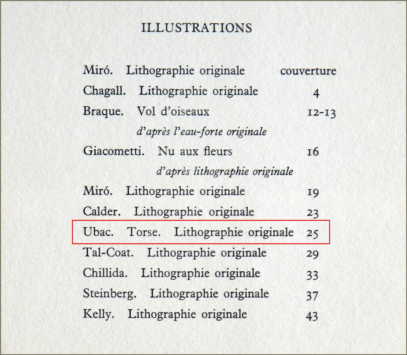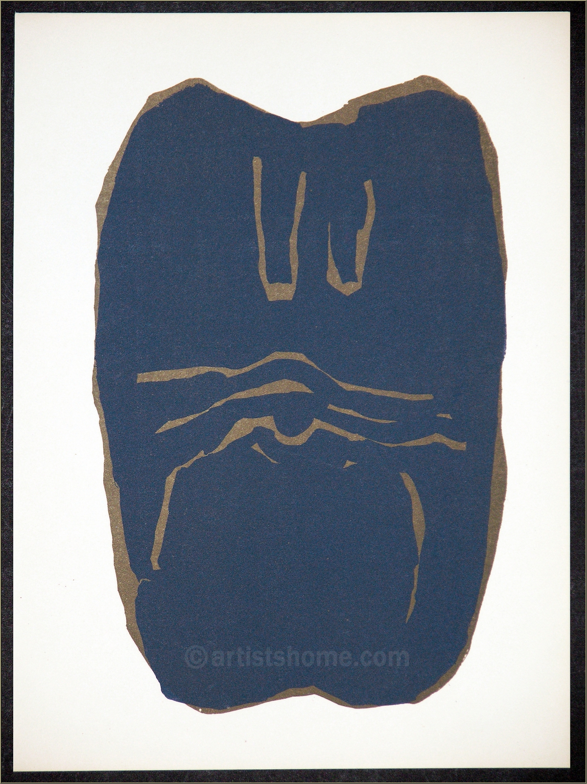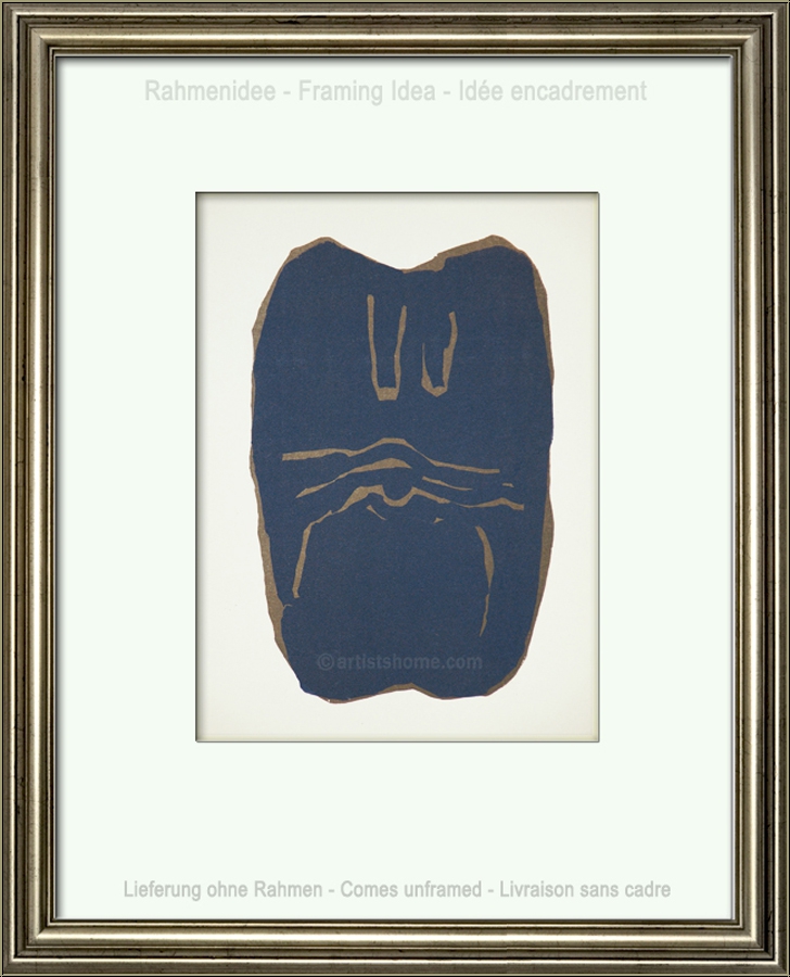 Details:"Torso" - Lithographie für Maeght und Redfern, 1966 Wie so oft bei Künstlern, die sowohl malerisch als auch plastisch bzw. bildhauerisch arbeiten, "verweben" sich beide Ausdrucksformen und befruchten einander. Hier die Abstraktion eines weiblichen Körpers, deren bläuliches Schiefergrau an die Steinreliefs Ubacs erinnert. Diese Originalgrafik wurde zusammen mit Werken weiterer Künstler auf kräftigem Büttenpapier für das Ausstellungsverzeichnis "Graphik, Lithographien und illustrierte Originalbücher des Maeght-Verlags" von der Redfern-Galerie in London herausgegeben und ist heute wegen ihrer Seltenheit ein gesuchtes Sammlerstück.