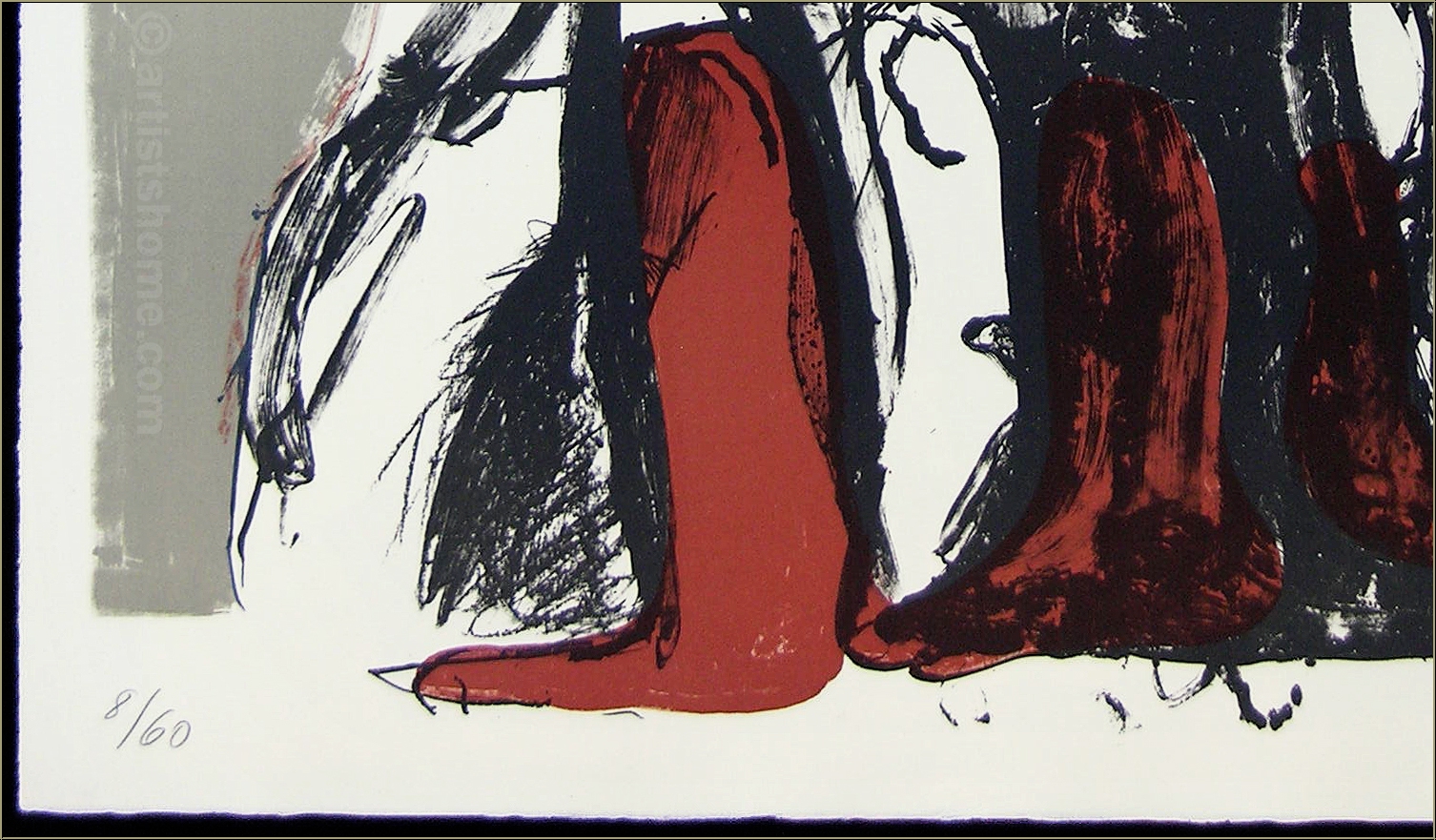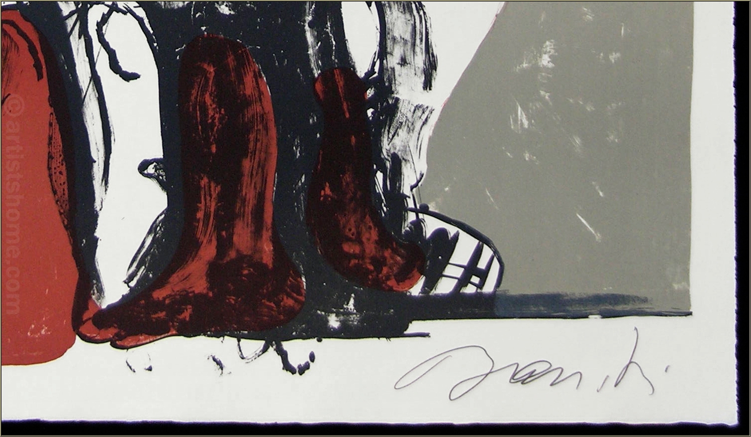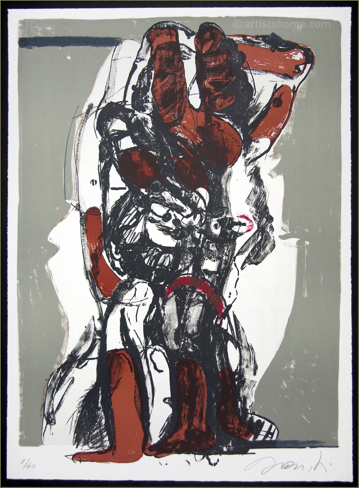 Details:"Black Sun Press" Von 1969 bis 1973 arbeitete Szymanski an drei lebensgroßen Bronzeskulpturen "Die Frauen von Messina", davon eine mit dem Titel "Black Sun Press". Die hier angebotene gleichnamige, großformatige Druckgrafik zeichnete er im Anschluss daran - sozusagen das Bild zur Plastik. Die Skulptur selbst ist als Teil der Dauerausstellung Kunst im öffentlichen Raum in der Berliner Lindenstraße im Stadteil Kreuzberg zu bewundern.